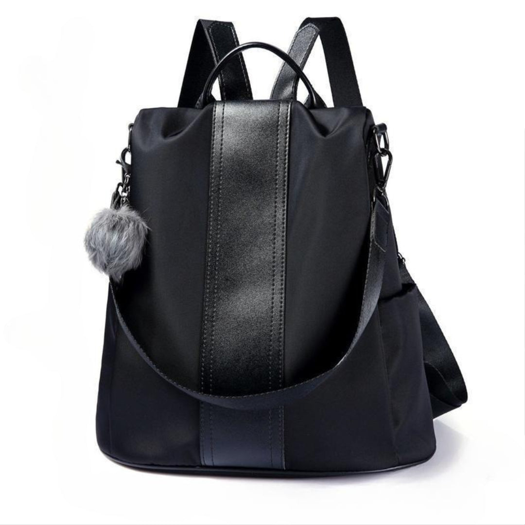 "Svart vattentät anti-stöld ryggsäck för kvinnor med justerbara axelremmar och multifunktionella fack, stilren design"