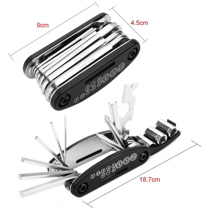 - 12 i 1 kombinationsverktyg för omfattande cykelreparationer.