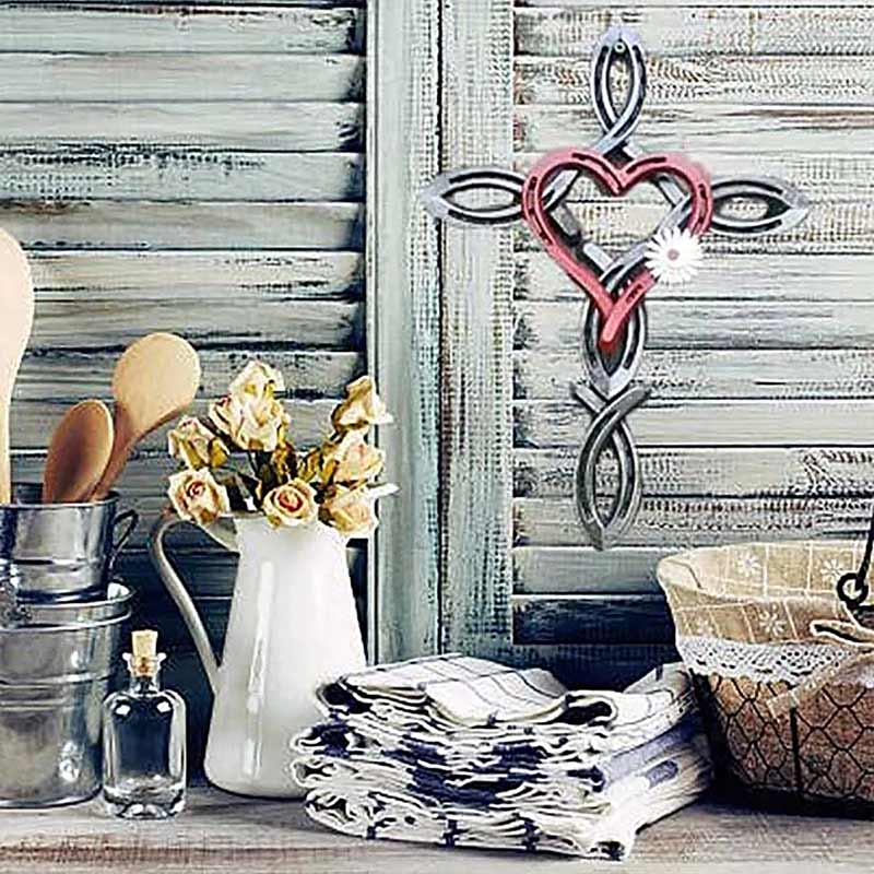 Välkomna kärlek och värme till ditt hem med denna förtrollande dekorativa hästskokrans. Med sitt säregna halvmaanformade kors och ett glänsande hjärta, handmålad och utsmyckad med en metallblomma, symboliserar den både livets skapelse och kärlekens styrka.