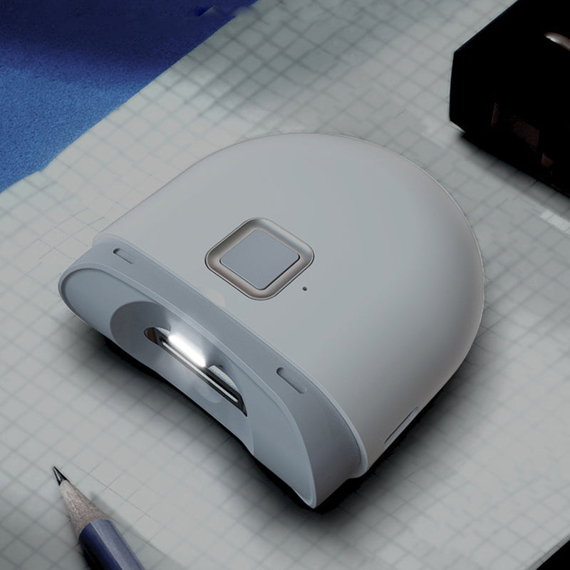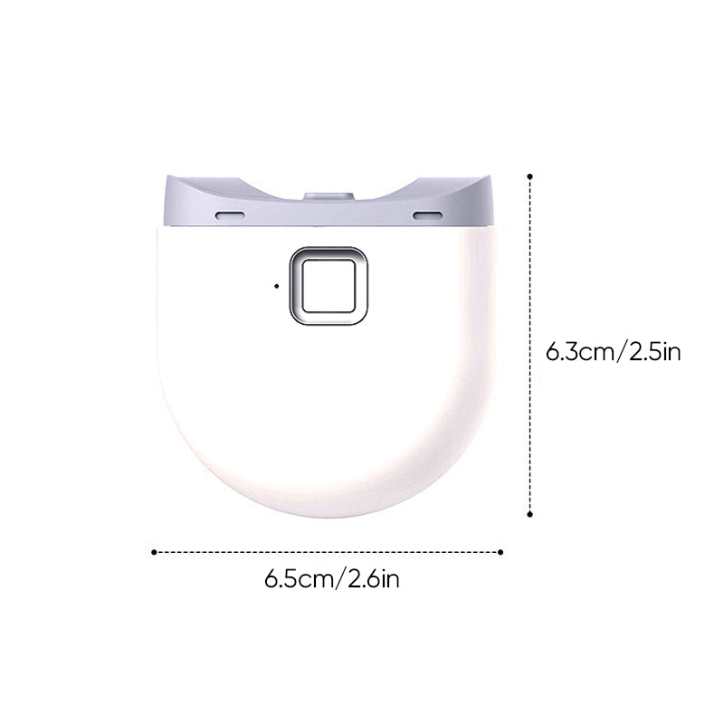 "Vit elektrisk automatisk nagelklippare med smidig design, precisionsskärhuvud och extrabelysning för säker nagelvård."