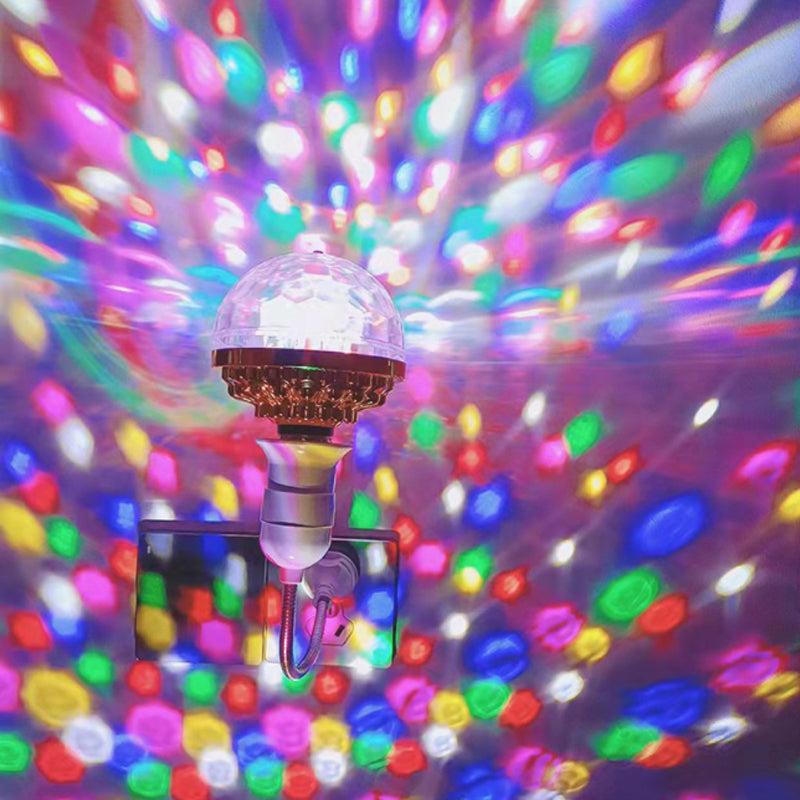 Förvandla stämningen i vilket rum som helst med denna fängslande färgglada roterande magiska bolljus. Denna unika LED-lampa kastar ett enastående ljusspel på väggar och tak, perfekt för att skapa en festlig atmosfär.