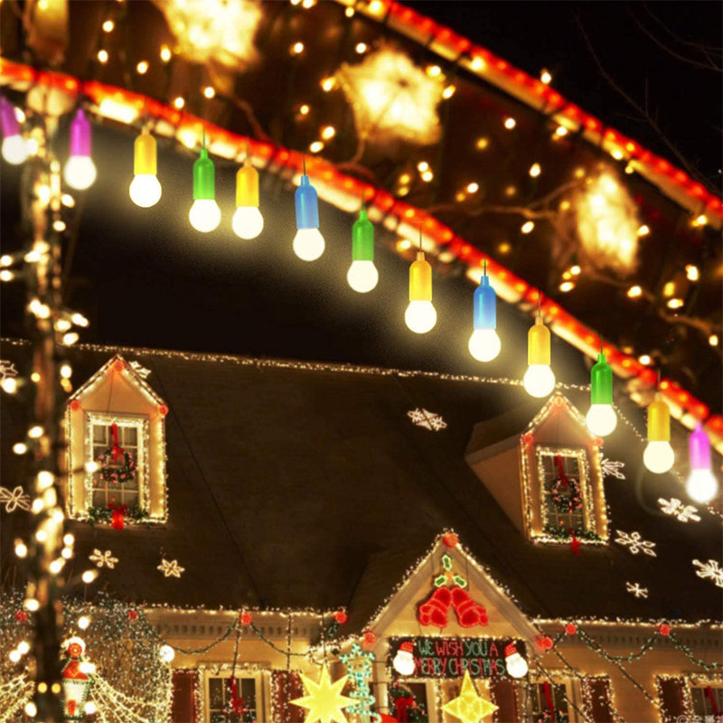 "Trådlösa retro LED-lampor i färger, blå, grön, gul, för hem och camping, hängs med snöre, enkel belysning."