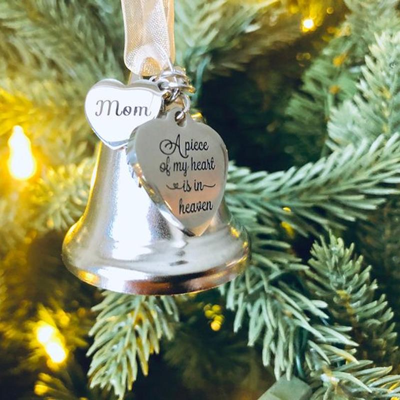 "Hjärtevärmande julminnesängel med klockform, eleganta ängelvingar, perfekt för julgranens dekoration."