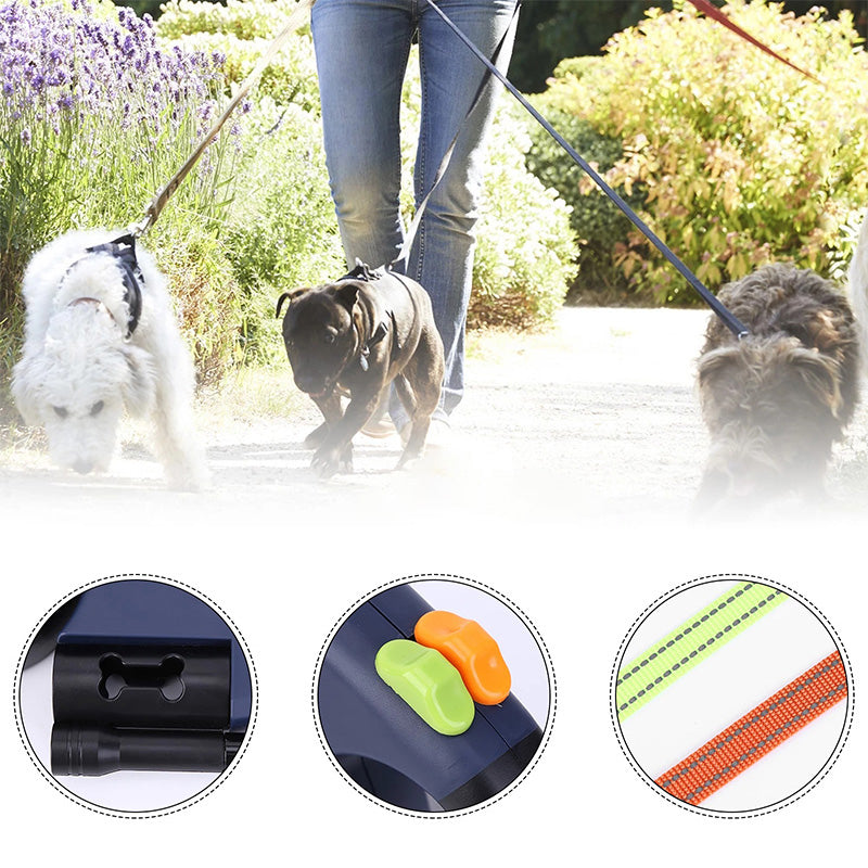 Upplev den ultimata komforten och säkerheten vid promenader med ditt husdjur. Det här automatiska dubbelkopplet är designat för husdjursägare som värdesätter bekvämlighet och säkerhet, särskilt vid kvällsrundor tack vare det inbyggda LED-belysningssystemet.