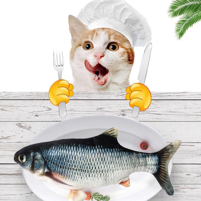 Interaktiv kattfiskleksak med USB-laddning; realistisk bomullsfisk som rör sig automatiskt, perfekt för kattens lekstunden.
