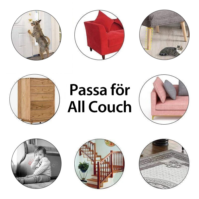 "Katter reptåliga transparent dubbelpolerad möbelskyddstejp på soffa, skyddar mot klösmärken. Inkluderar spikar."