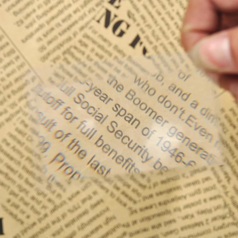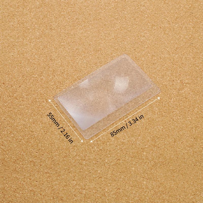 "Kompakt, genomskinligt PVC kreditkortsförstoringsglas för läsning, förstorar text 3x, lätt att bära i plånboken."