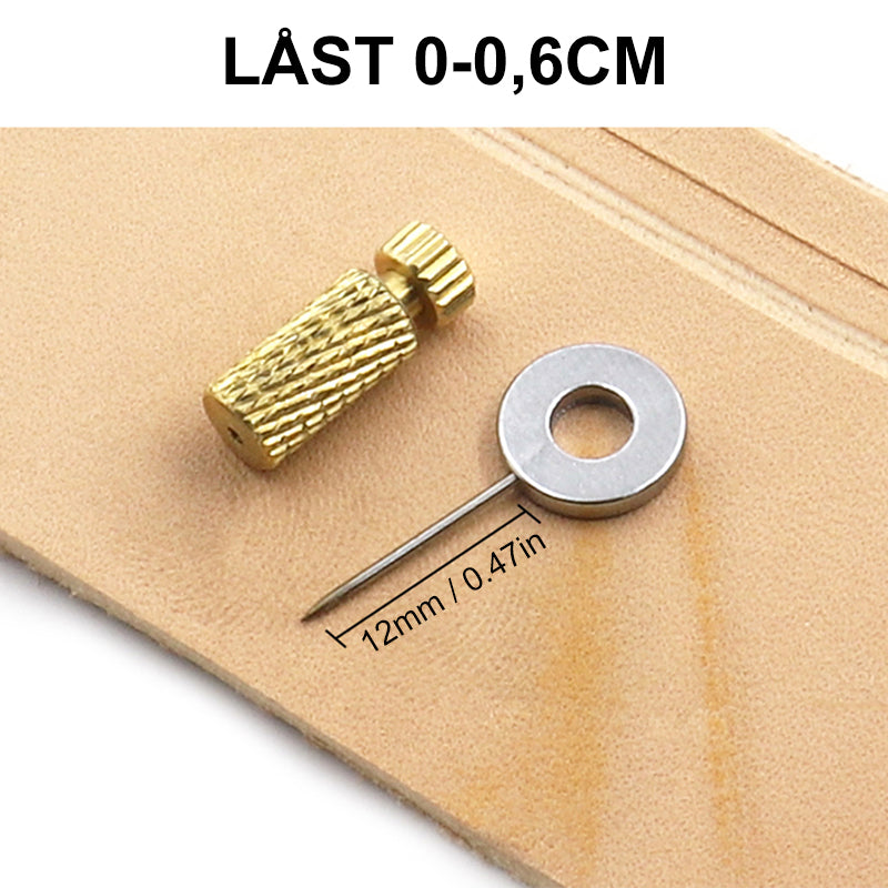 a. Kort nål (12 mm) – Lämplig för 0-6 mm läder.