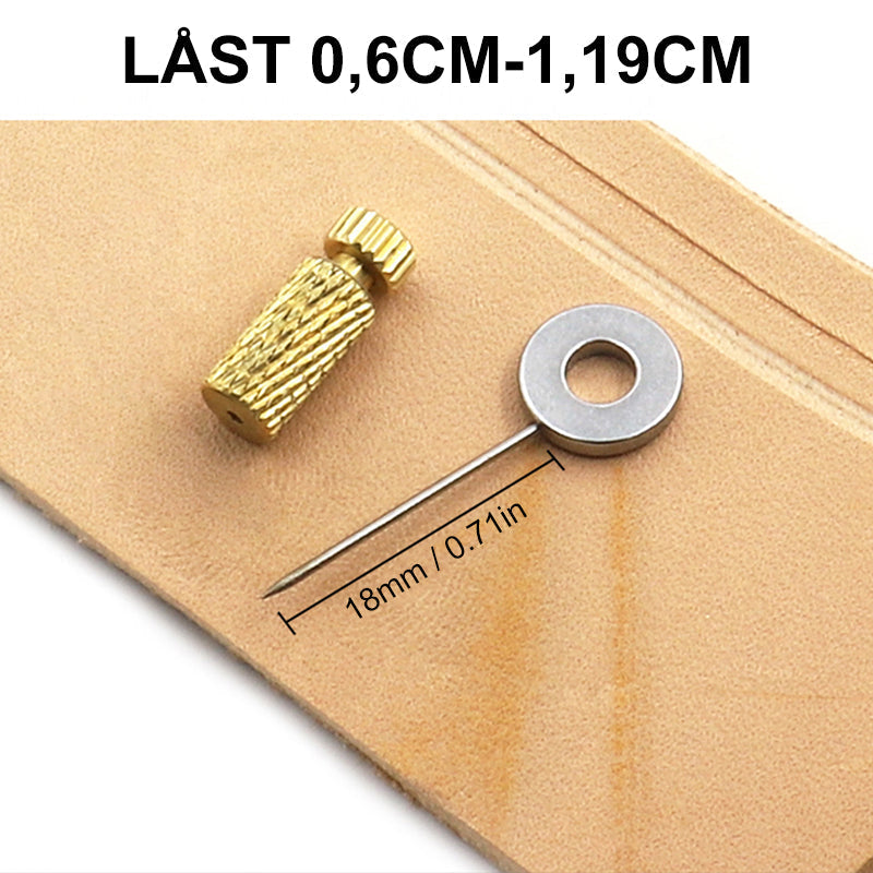 b. Lång nål (18 mm) – Lämplig för 6-12 mm läder.