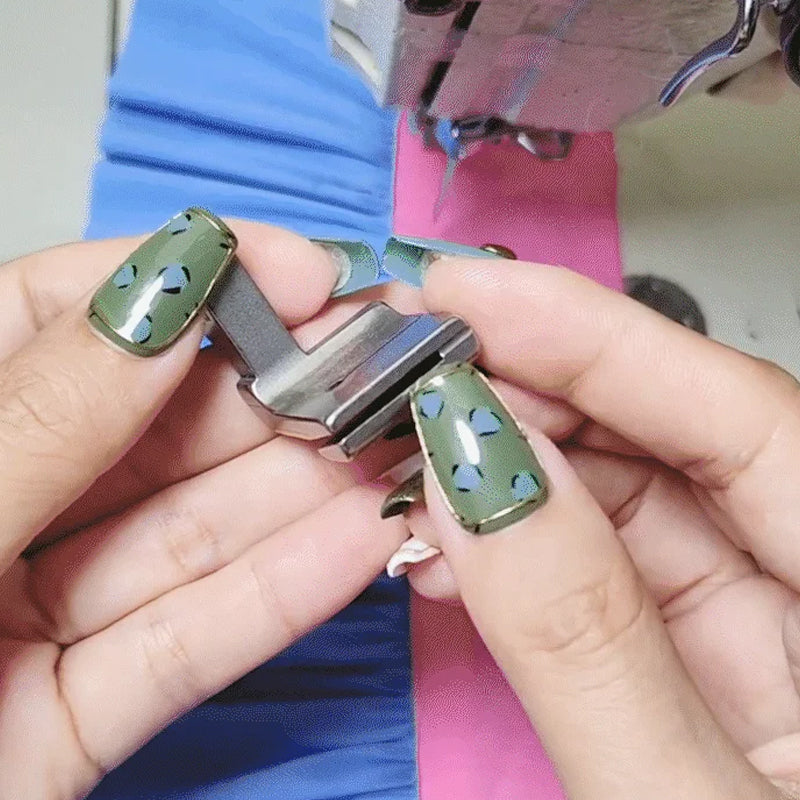 "Pressarfot för rörsymaskin, metallic finish, passar industrisymaskiner. Skapar professionella volanger enkelt och vackert."