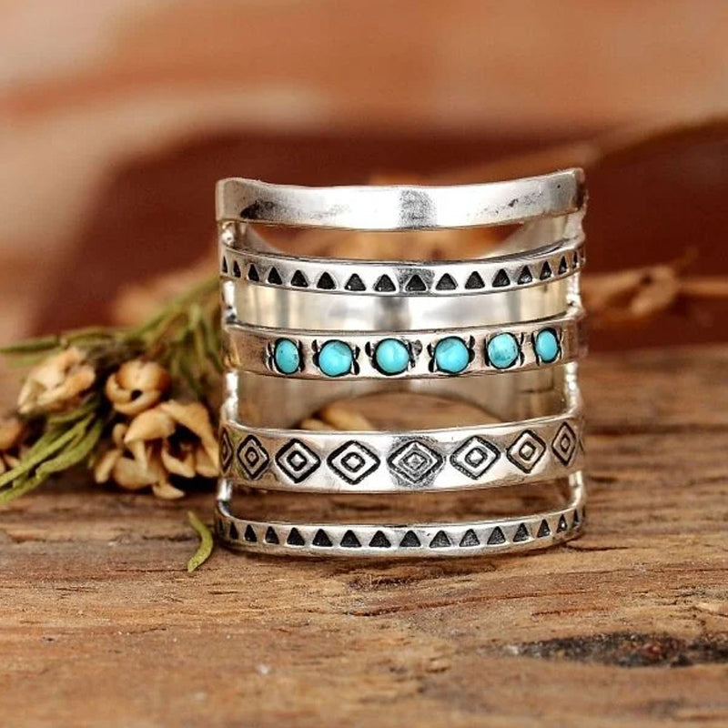 Silver Damring med Stjärna, Måne och Sol