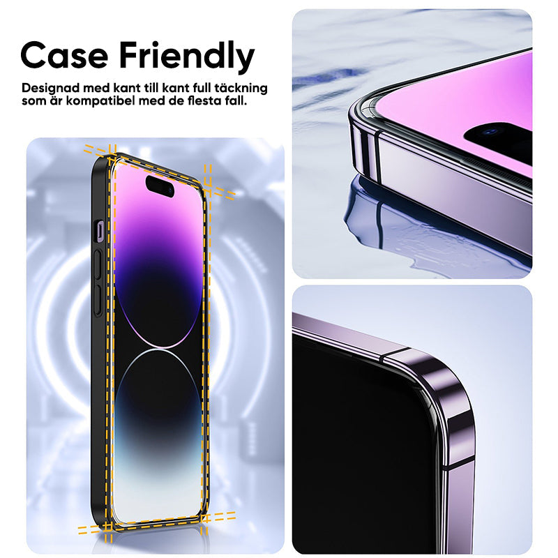 "Skärmskydd av sekretessglas för smartphone, ultratydlig display, anti-repor och anti-fingeravtryck, stilrent och säkert."