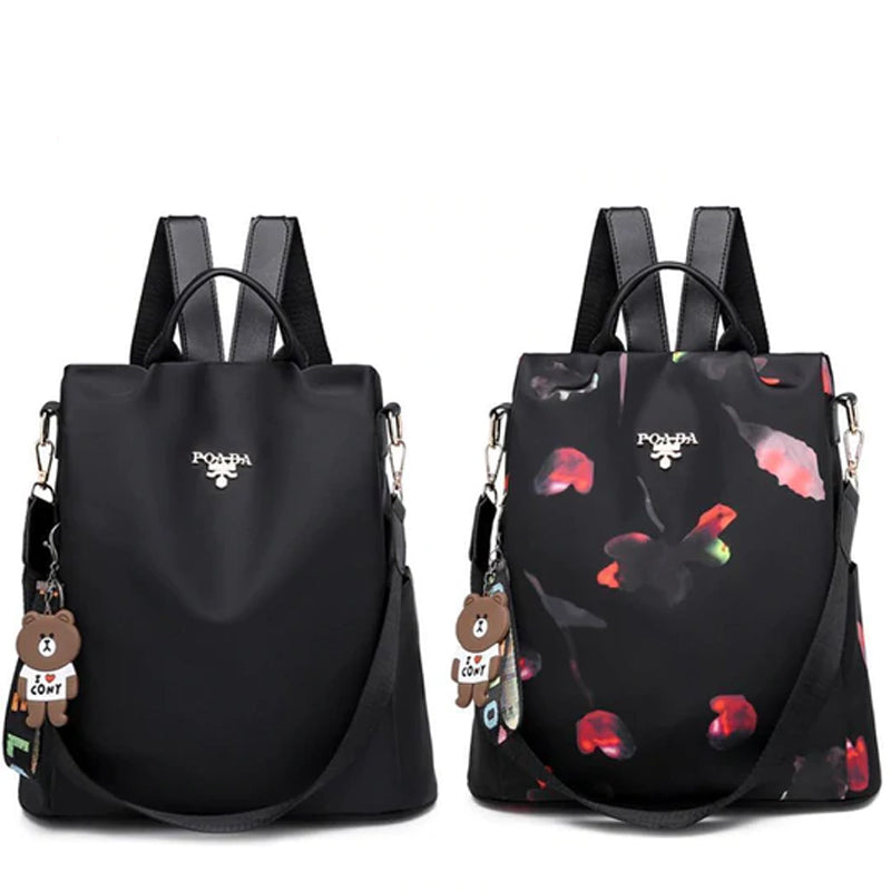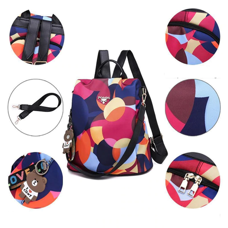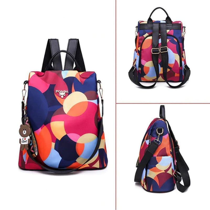 "Stöldsäker damryggsäck med fjärilsmönster, stor kapacitet, Oxford- och polyestertyg, mångsidiga fickor, justerbara remmar."