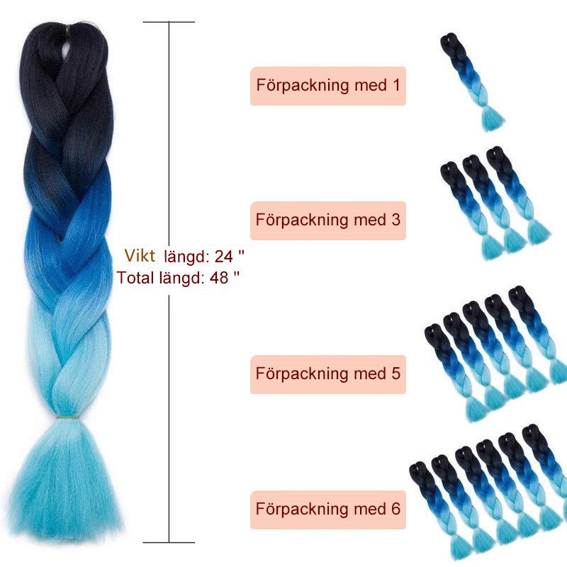 Våra jumbo flätor är lätta att sätta upp och underhålla, vilket gör dem till ett idealiskt val för både vardagligt användande och speciella tillfällen. För bästa resultat, var noga med att använda skonsamma hårvårdsprodukter.