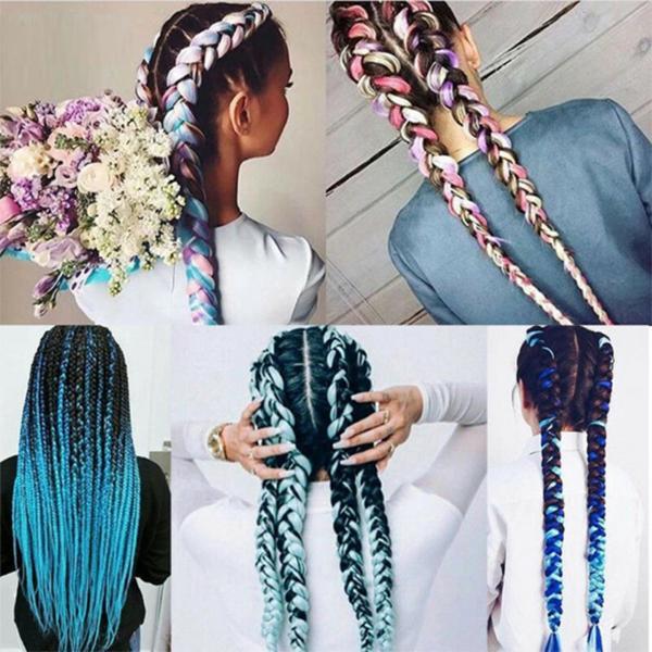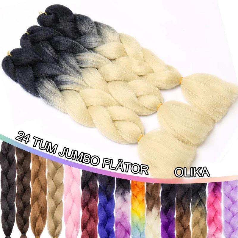 "Syntetiska jumbo flätor i flera färger, värmebeständiga och långa, ideala för trendiga frisyrer, perfekta för kvinnor."