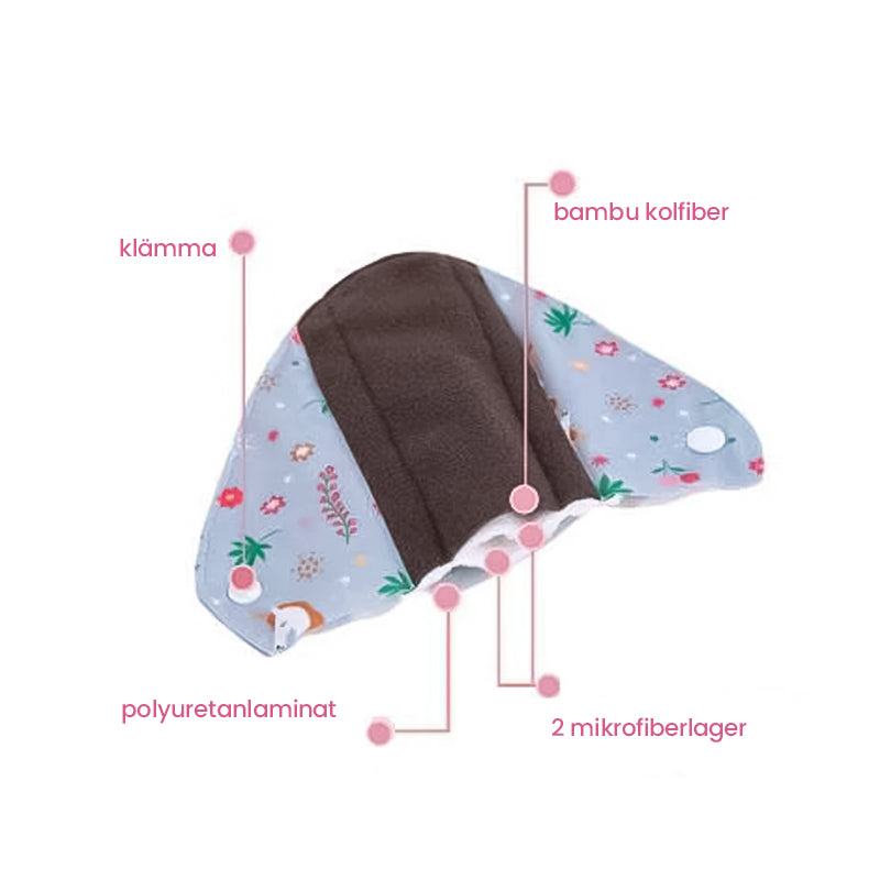 Tvättbara dambindor av bambukol - Vattentäta och Absorberande