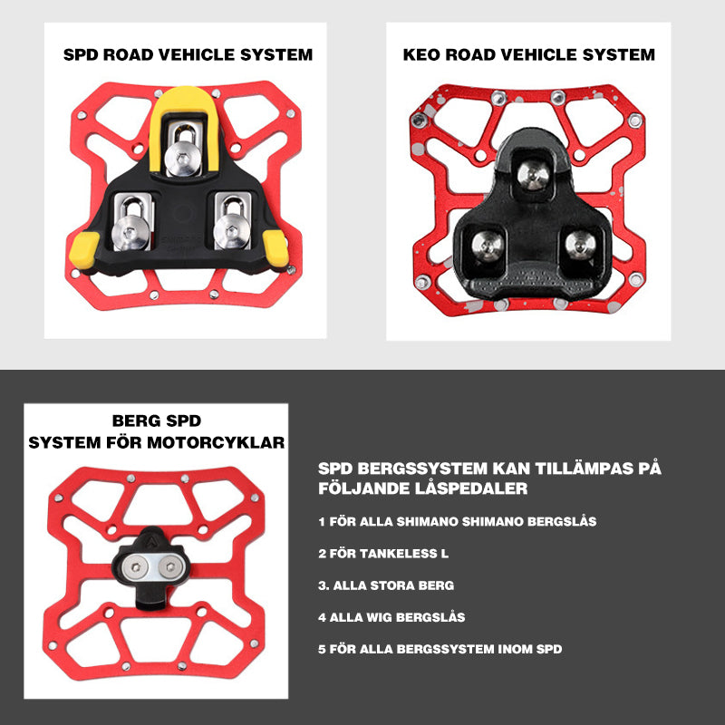 Universell passform: Kompatibel med alla clipless pedaler som erbjuder 2 och 3 håls alternativ.
