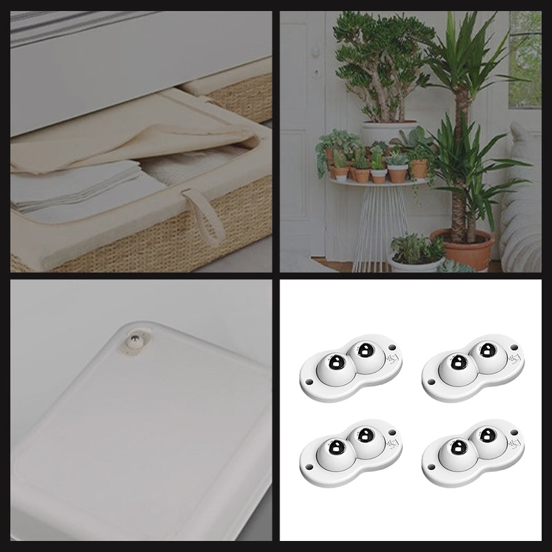 Uppgradera ditt hem med självhäftande mini 360° hjul och gör förflyttningar enklare än någonsin. Dessa små men kraftfulla hjul är utformade för att hjälpa dig att flytta tunga föremål utan ansträngning. Fäst bara under din förvaringslåda eller möbel och njut av smidig mobilitet.